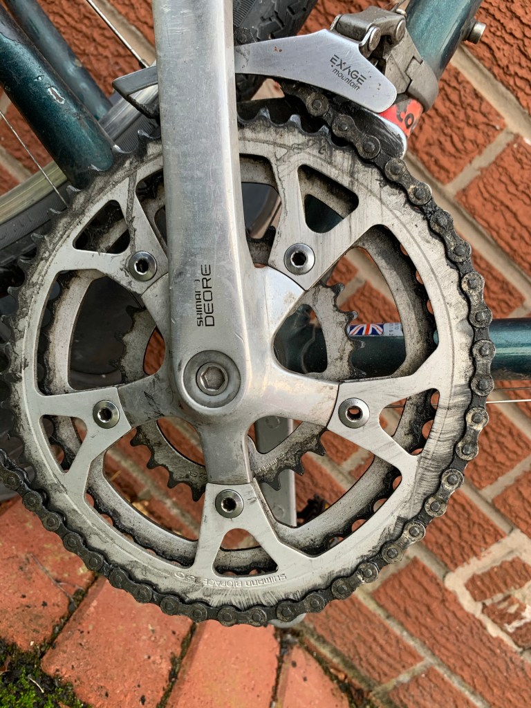 What was needed was a bike that I didn’t mind getting dirty. A bike that would shrug off those unseen winter potholes without a whimper. A bike with a drivetrain that would keep on shifting even when covered with mud and grit, and most importantly a bike with full length mudguards…… oh, and it couldn’t cost a fortune either. Did such a mythical beast exist? Off to browse eBay I went, and here’s what I came up with –