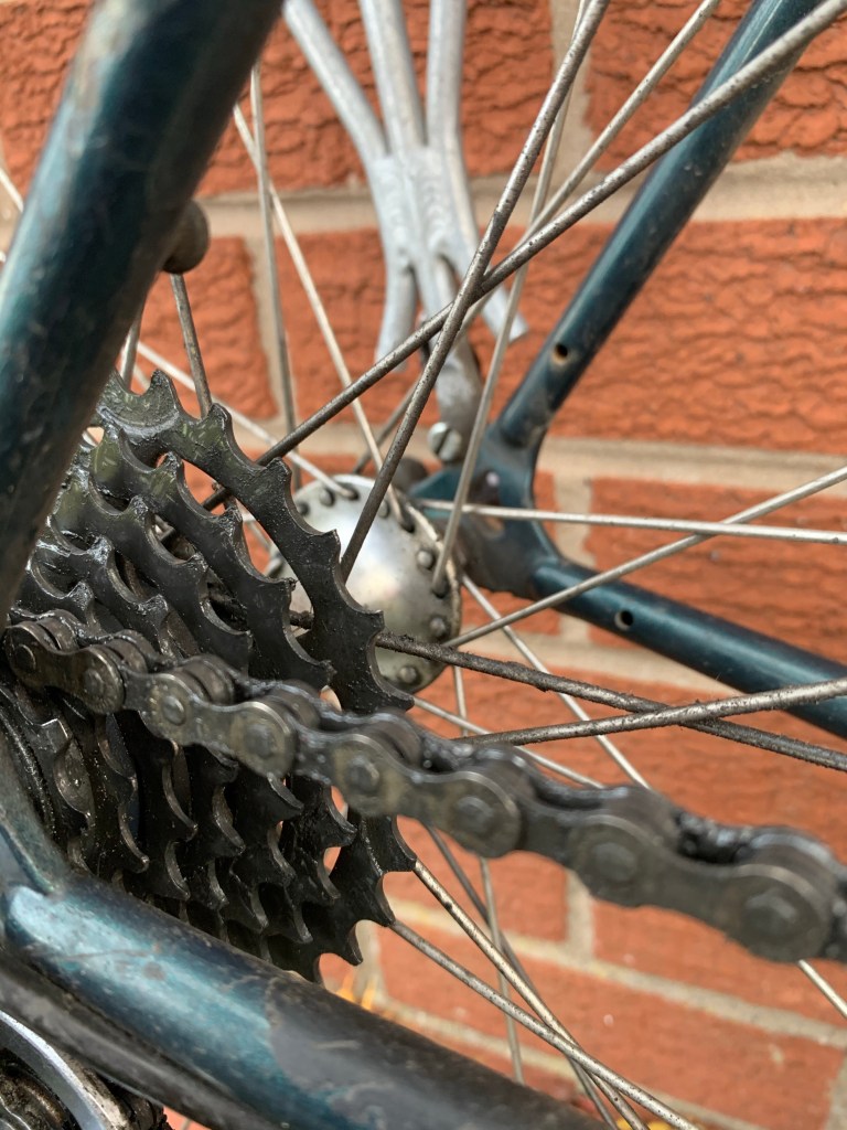 It wasn’t all milk and honey though. After a couple of rides it was pretty obvious there was some work to be done. The headset was pretty notchy and the bottom bracket was creaking alarmingly under load, in fact it was abundantly clear that most of the drivetrain was probably several thousand miles past its best …… so back onto eBay I went. The great thing about older bikes like the galaxy is that everything you need is still available but the prices are a real eye opener, and in a good way for once. A new cassette for my 11spd road bike would cost me around £50 (even in the post Christmas sales), but a 7 speed item for the Dawes is only £16. In fact a new chain, cassette, cartridge bottom bracket and a pair of jockey wheels for the rear mech came to less than £45 including postage, that is a bloomin bargain in anyone’s money. So, for less money than a modern cassette the entire drivetrain got a refurb and the headset responded to a good clean and a re-grease, the result? No more Nasty creaks and a noticeably smoother ride. The next issue was the shifters and brake hoods, that turned into a whole different tale of minor woe – so more on that in another episode.