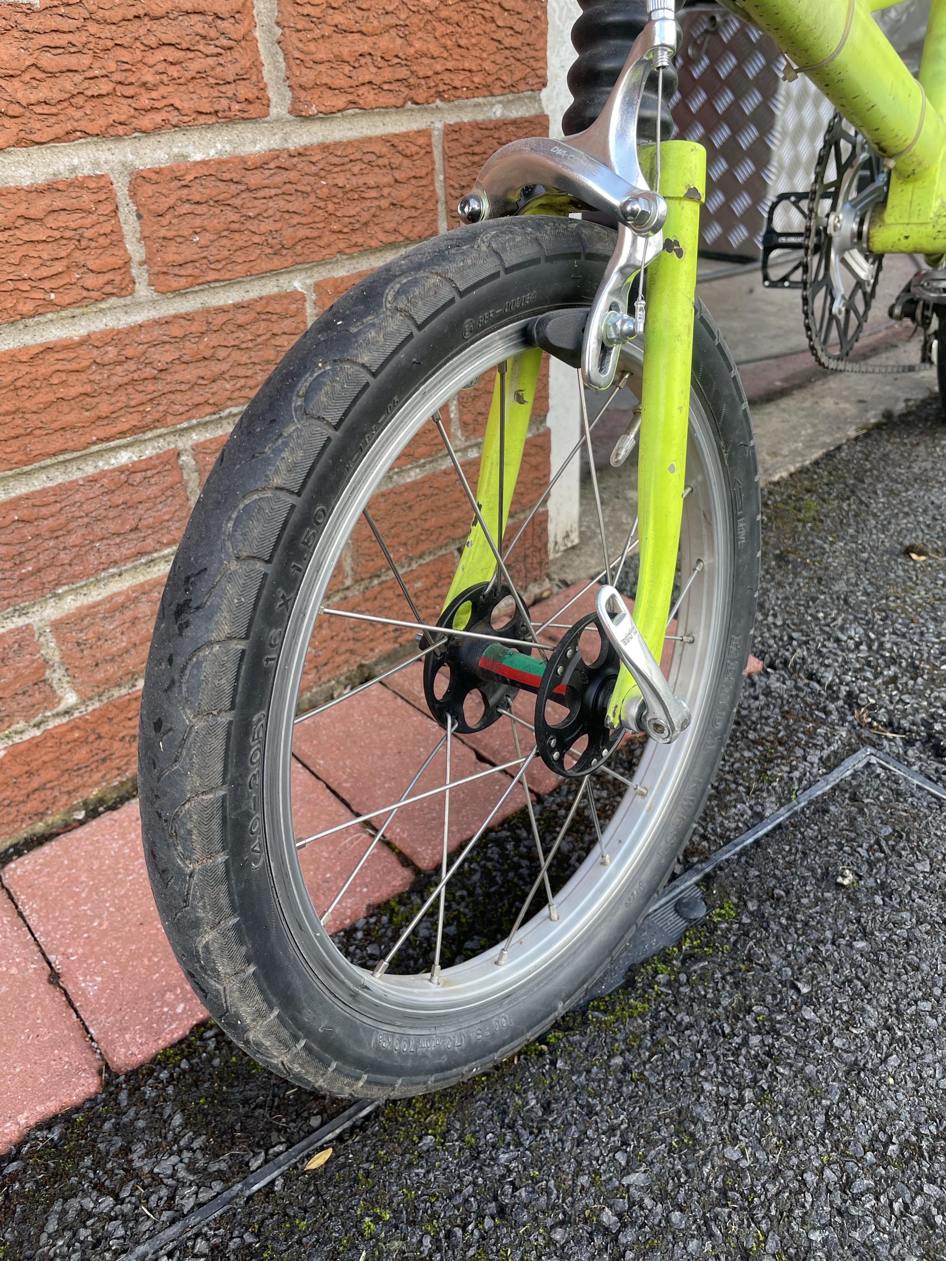 The new bigger wheels went straight on and I was very relieved to find out that the Moulton experts on the internet were right and they did fit, only just mind but minimal clearance is still clearance!