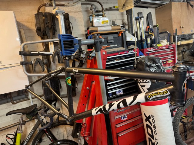 All this of course is a very long lead in to admitting I’ve acquired another bike which I really don’t need or even have any space for. Its not new, isn’t remotely cutting edge and will do most things worse from a performance point of view then my current bikes, but once I’d seen the advert I was a lost cause – I kinda knew I was going to buy it straight away. This is what came home with me in the boot of the car last week before being smuggled into the garage after I told my wife I was just popping out to pick up a ‘bit of bike stuff’ I’d spent ‘a few quid’ on second hand.