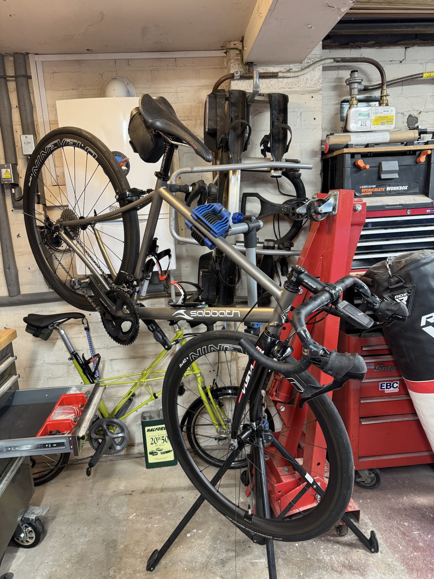 Way back last October when I was waxing lyrically about how buying the new Zwift Ride indoor trainer was going to revolutionise my winter training I mentioned that one of the side benefits was going to be taking the chance over the winter off season finally tackle the long overdue rebuild of my Sabbath Silk Road which has been faithfully serving as my primary roadbike for over the last ten years. (here’s a link to that post) https://thedecliningcyclist.com/2024/10/14/zwift-ride-my-answer-to-the-uk-winter/